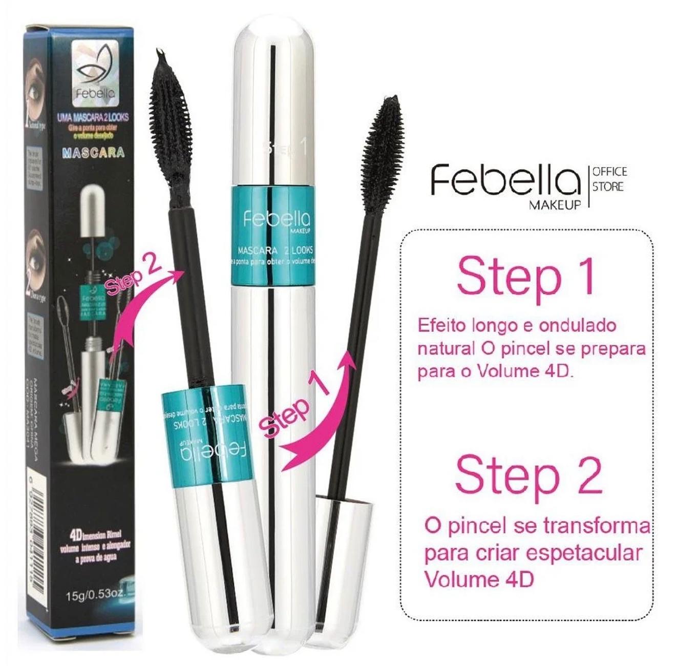 Máscara de Cilios 4D 2 em 1 Febella